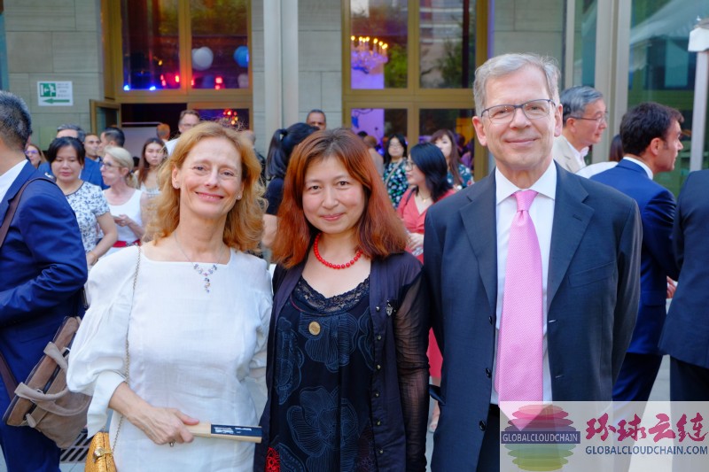环球云链·世界商人网创始合伙人兼主编王晓玲与瑞士驻华大使罗志谊阁下商谈文化产业领域的合作并与其夫人一起愉快合影