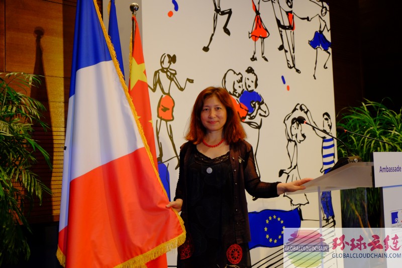环球云链·世界商人网创始合伙人兼主编王晓玲与法国国旗
