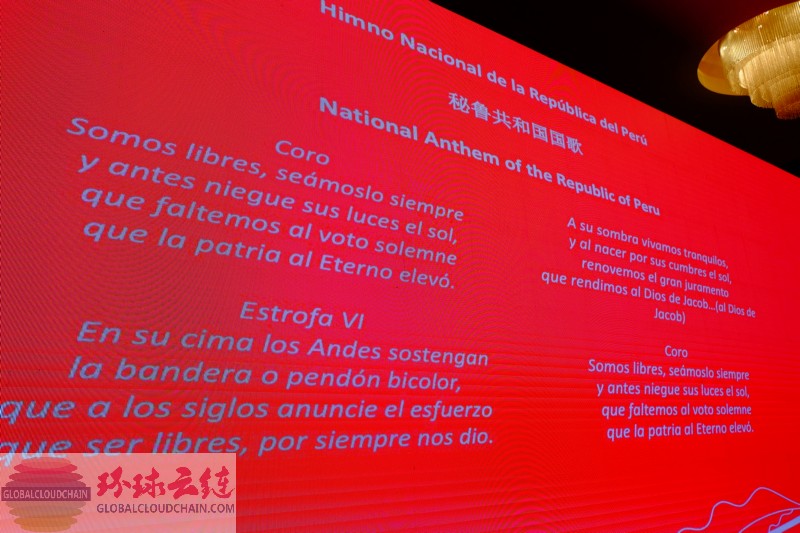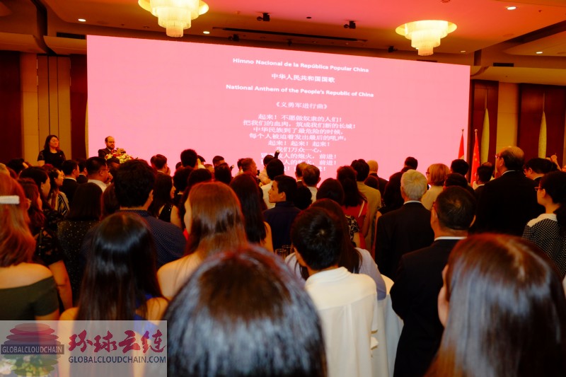 庄严的两国国歌拉开了秘鲁国庆招待会序幕,爱国激情满满,全场振奋。各国驻华大使,参赞,中国原驻拉美各国大使,中国拉美友好企业家协会、机构、组织,拉美各国驻华企业家代表、留学生代表共计300余人出席了招待会。环球云链作为国际旅游产业项目孵化器平台,区块链咨询与资讯平台应邀出席。