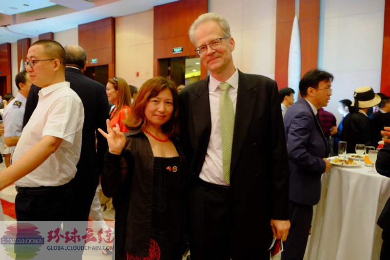 环球云链·世界商人网创始合伙人兼主编王晓玲与瑞典驻华公使衔参赞、副大使安凯福阁下相聚于秘鲁国庆198周年招待会