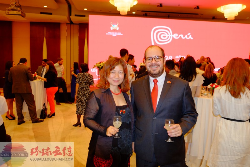环球云链·世界商人网创始合伙人兼主编王晓玲与秘鲁驻华使馆文化参赞Ignacio先生相聚于秘鲁国庆198周年暨中国移民170周年纪念招待会