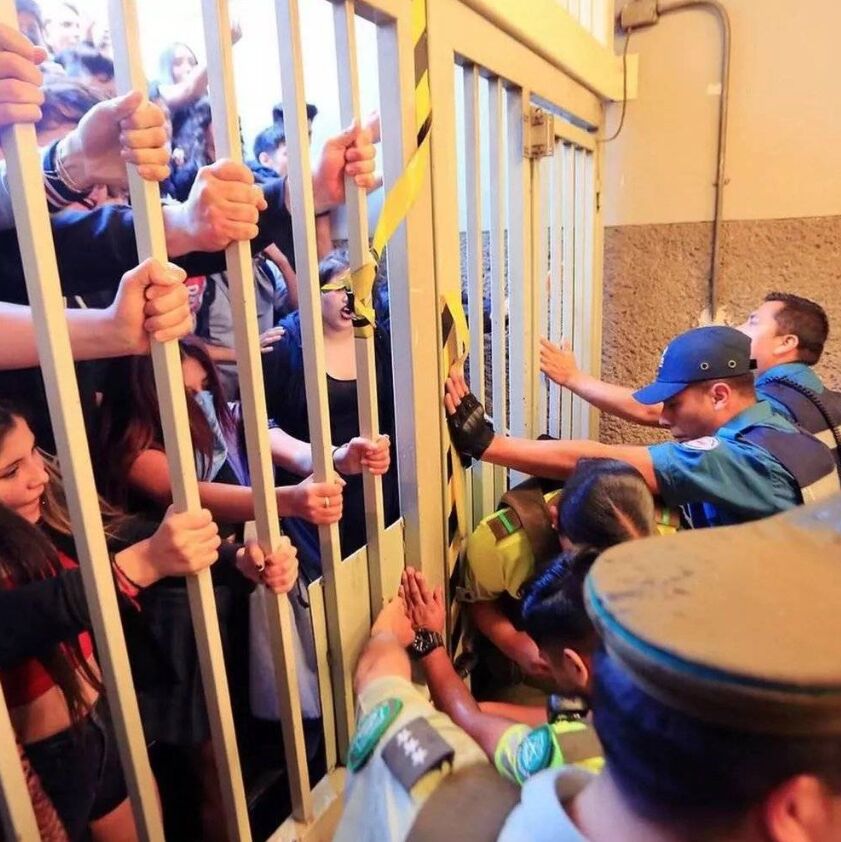 智利圣地亚哥地铁早晚高峰以学生为主的抗议者逃票跳闸进站