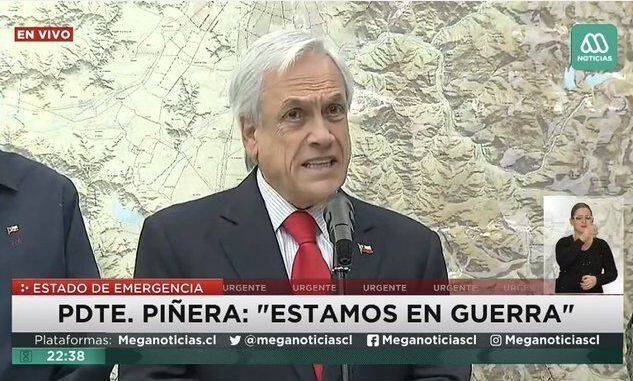 19日,智利总统皮涅拉宣布圣地亚哥进入紧急状态;22日晚,他发表电视讲话向全国人民道歉。然而,25日,动乱仍在蔓延……