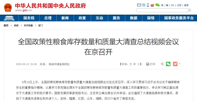 风险地图 >> 【粮食安全】全国政策性粮食库存数可满足全国居民一年以上正常消费需求