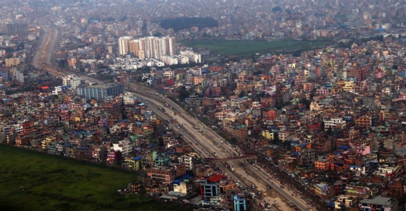 An aerial view of the undergoing Koteshwor-Kalanki section of Ring Road Improvement Project assisted by Chinese Government in Kathmandu, Nepal, June 3, 2017. /Xinhua