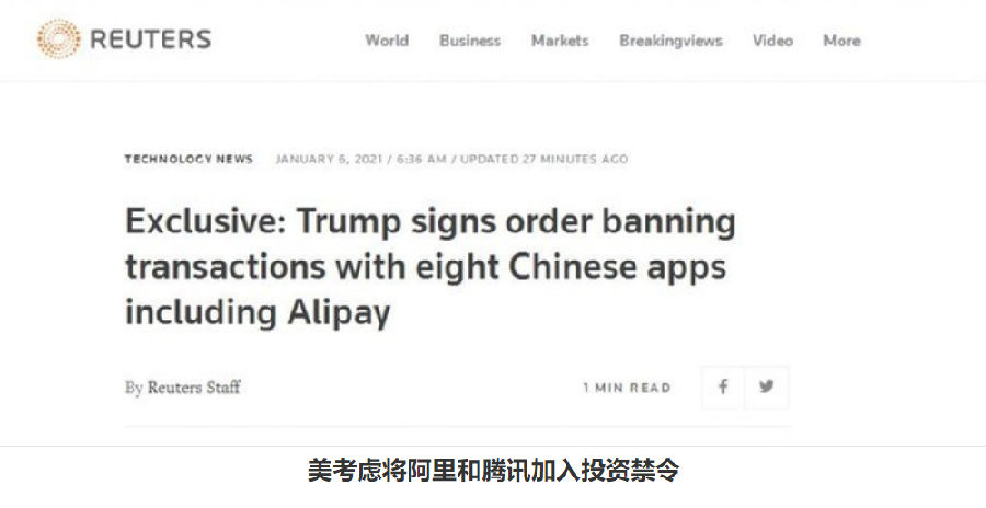 风险地图 >> 美国拟将阿里腾讯加入投资禁令,美媒:特朗普仓促出台措施引混乱