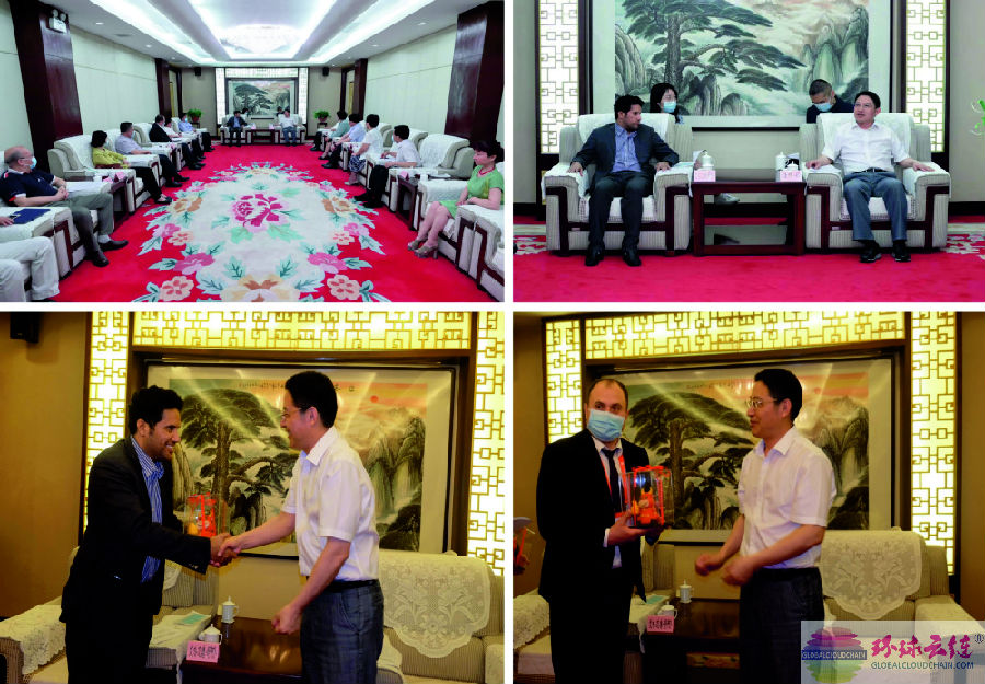 图1阿盟驻华使馆代表处副主任艾哈迈德· 舒阿卜阁下率领的外交使团一行受到运城市市长储祥好的热情欢迎和接见,双方进行友好会晤并互赠礼物