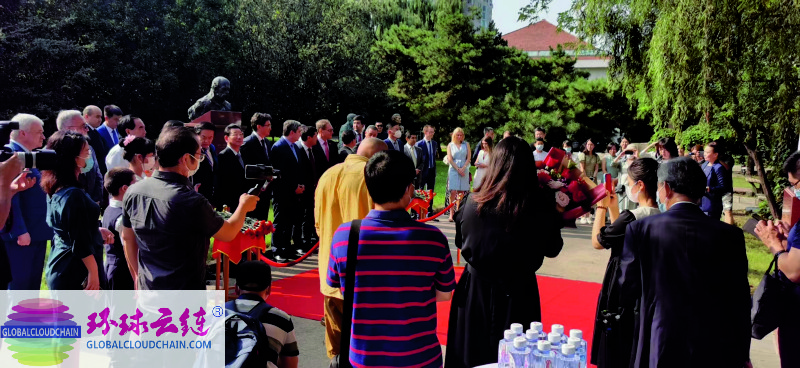 哈萨克斯坦驻华大使哈比特·柯依舍巴耶夫阁下与各国驻华使馆大使向哈萨克斯坦伟大诗哈萨克伟大诗人、思想家、启蒙者阿拜·库南巴耶夫雕塑敬献献花,缅怀这位哈萨克文化巨匠的不朽业绩。