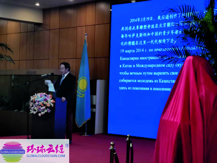 随后,哈萨克斯坦大使哈比特·柯依舍巴耶夫阁下,袁熙坤馆长和中国友谊促进会理事长陈智敏一同为其创作的《阿拜》雕塑起运哈萨克斯坦揭幕。该雕塑是由中国人民政治协商会议全国委员会书画室雕塑工作室和北京金台艺术馆馆长袁熙坤共同向哈萨克斯坦共和国东哈萨克斯坦州阿拜区“阿拜专业寄宿学校”捐赠。
