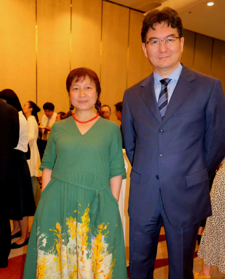 环球云链·世界商人网主编王晓玲与哈萨克斯坦共和国驻华大使哈比特·柯依舍巴耶夫阁下会面,商谈合作并愉快合影