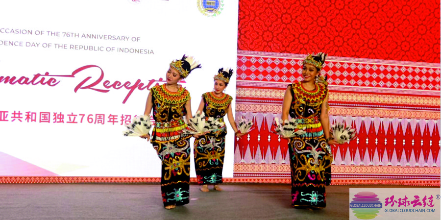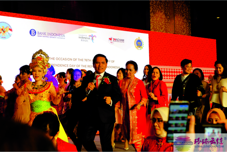周浩黎大使及夫人艾茜薇领舞印度尼西亚独立76周年招待会