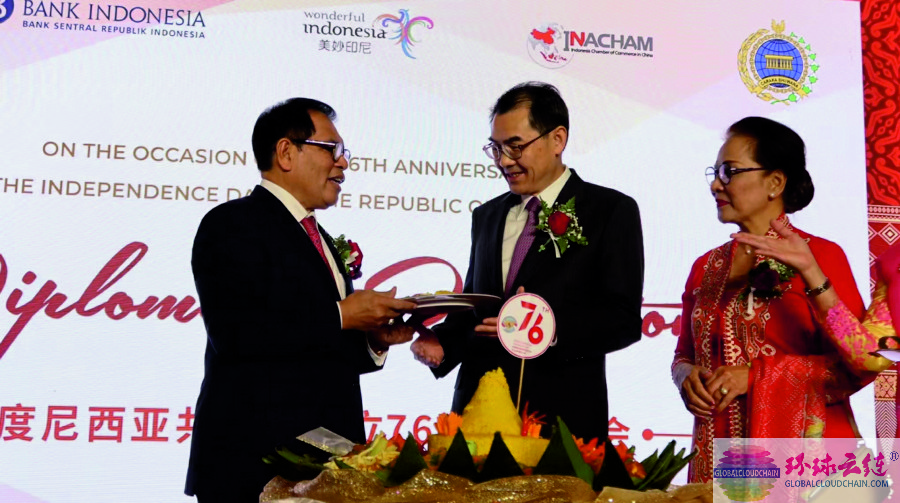 首先致敬印中两国国歌、国旗。随即,印度尼西亚共和国驻华大使周浩黎阁下致欢迎词,向长期以来为印尼与中国两国互利友好关系给予支持的各位贵宾与同事表示感谢。他说,76年前,印度尼西亚开国总统苏加诺与副总统哈达正式宣布印度尼西亚独立。尽管历经挑战,印尼与中国的双边关系自建交以来一直向前发展,这体现于印尼在华留学生不断增加,中国在印尼投资额不断提高,新冠肺炎疫情期间印尼与中国的疫苗合作、中国向印尼爱心捐赠的医用防护物资,这都充分彰显两国全面战略伙伴关系持续发展。希望印尼在今年底实现2.7亿人口中的75%群体免疫,待疫情结束后,将鼓励印尼的学生、企业家和官员访问中国,同时邀请外国游客安全地访问印尼。