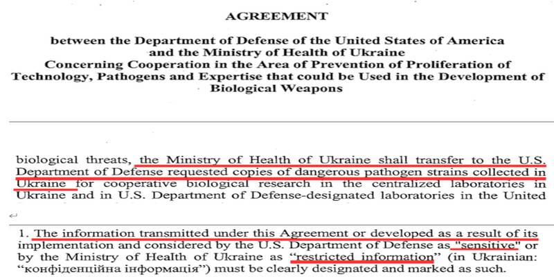 这一方面是因为,美国在生物武器问题上的诸多可疑行为和过往的斑斑劣迹,尤其是美国一直拒绝《禁止生物武器公约》中的多边核查机制谈判;另一方面则是因为,从美国国防部与乌克兰方面的合作文本来看,这些实验室存储的病菌以及研究成果,都是可以被美方优先获得的,而且合作内容还属于不得对公众披露的“限制性信息”。