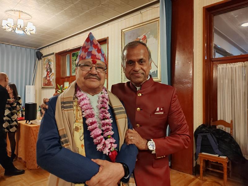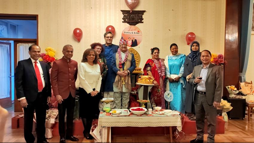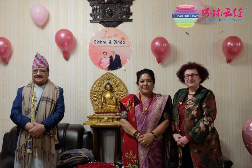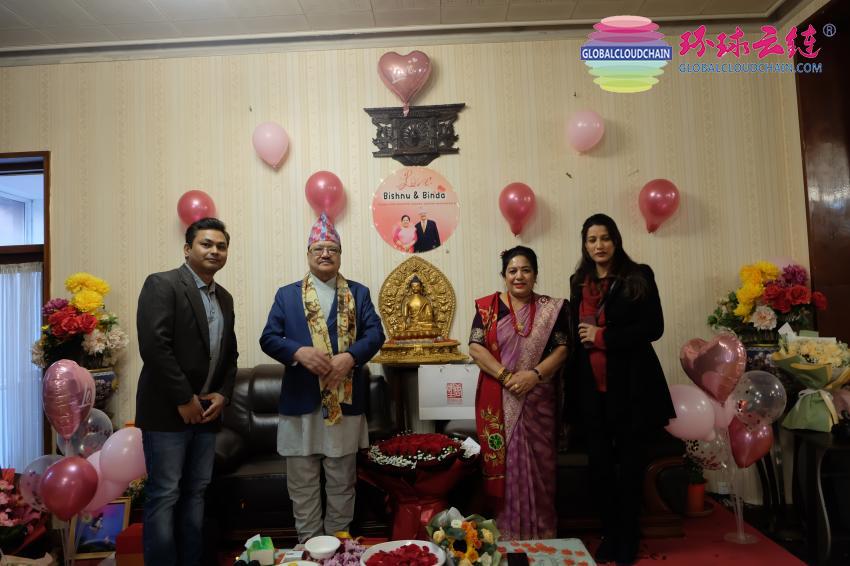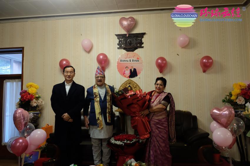 2024年2月13日,情人节来临在即,农历正月初五财神爷也驾到!恰逢尼泊尔驻华大使和夫人Bishnu & Binda结婚50周年金婚纪念日庆祝活动在尼泊尔驻华大使馆隆重举行!三喜临门喜不胜喜!
