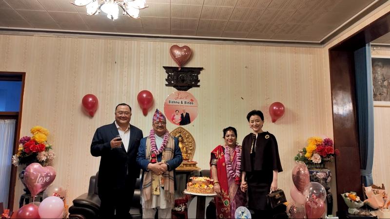 尼泊尔驻华大使在结婚50周年金婚纪念日庆典现场