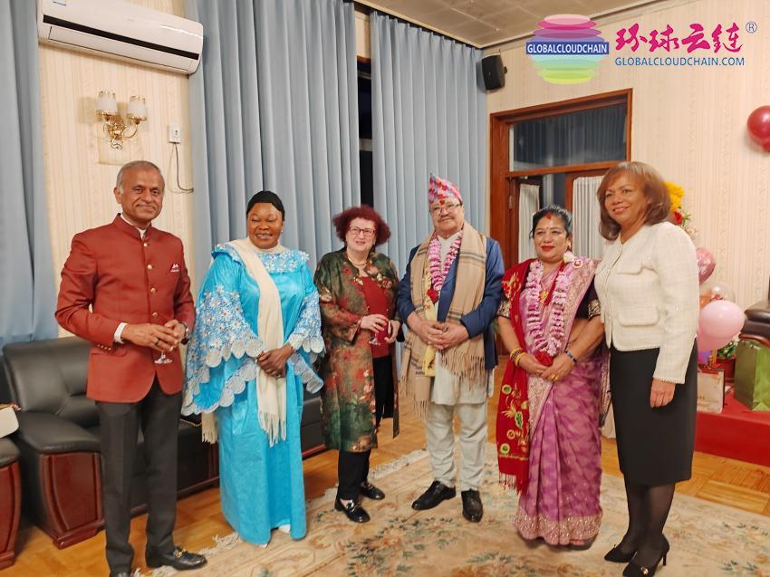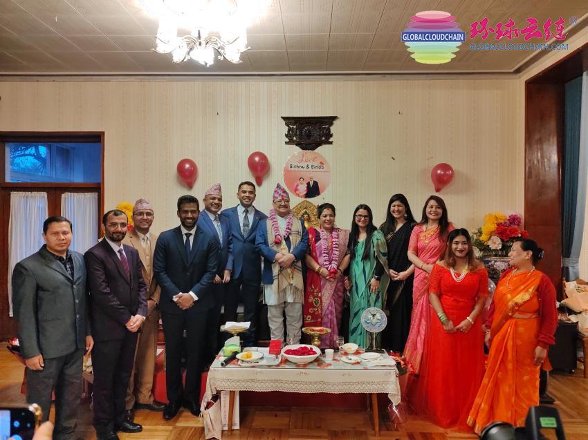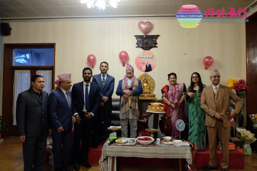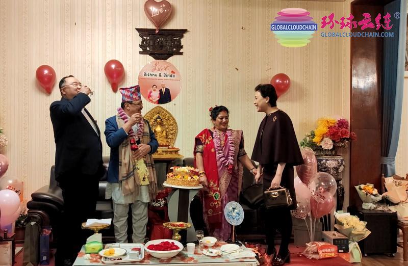 应尼泊尔驻华大使邀请,世界生态组织亚洲管理中心办公室主任,环球云链·世界商人网总编王晓玲(Marissa)出席见证了大使和夫人的金婚盛典。