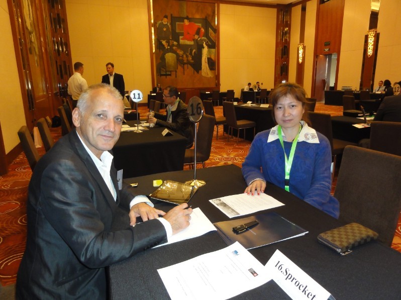 北京圣雨金秋影视文化传媒(Bliss & Blaze)中国区CEO王晓玲与Sprocket投资有限公司(Sprocket  Investment  Pty Ltd),一家世界领先的互动触摸屏系统和射频识别技术供应商首席执行长Gerry  Mussett先生合影