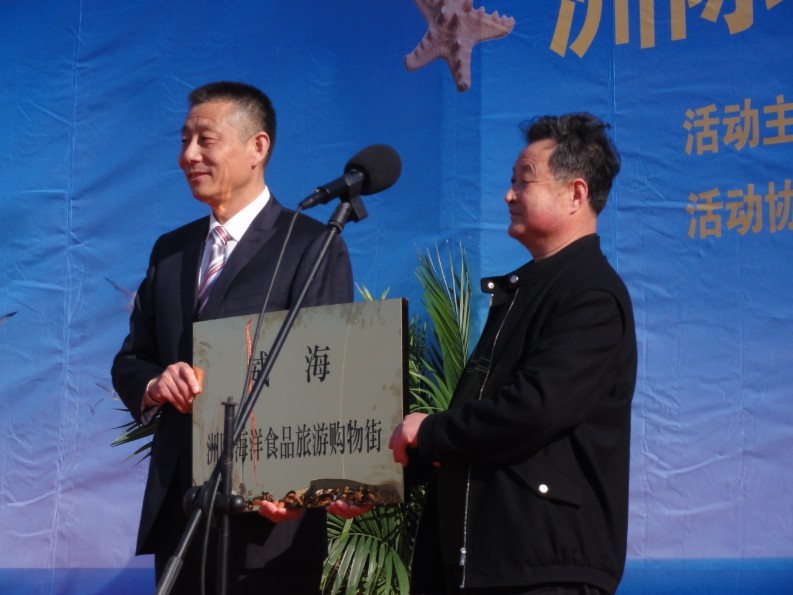 百丽集团董事长娄贵顺为山东省海产品协会会长授牌:威海洲际海洋食品旅游购物街