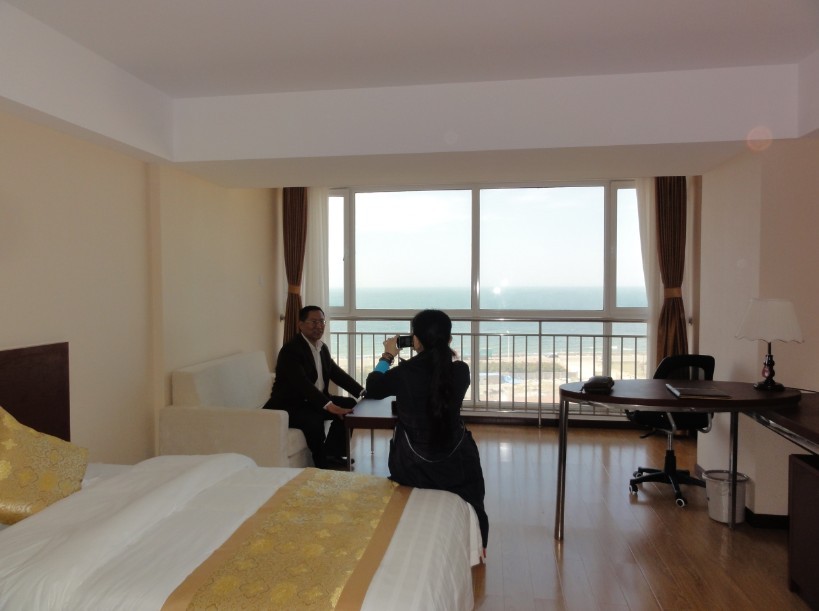 五一假日威海洲际旅游休闲度假区业务主管在介绍房型和房价