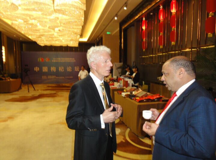 阿尔巴尼亚前驻华大使塔希尔?埃莱兹博士;埃及驻华使馆文化官、埃及国家信息服务部多媒体新闻中心主任、2016埃中文化年项目总负责人艾哈迈德?萨拉姆先生在中国枸杞论坛