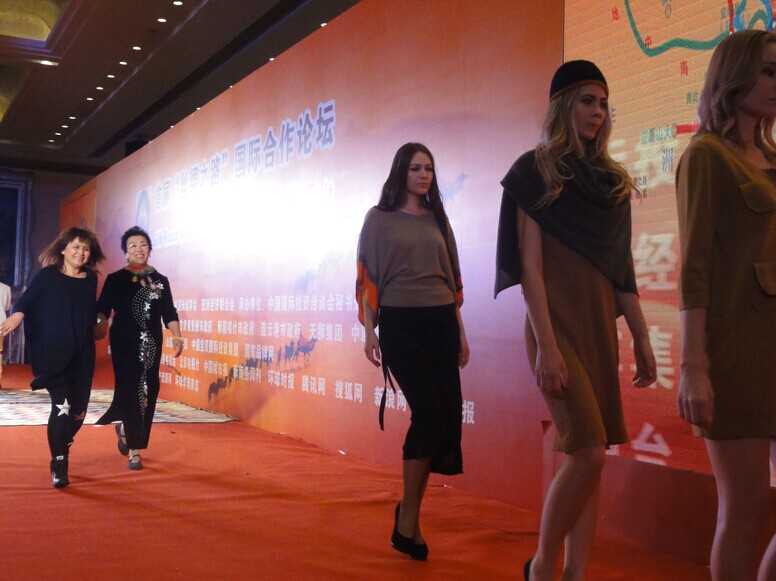 首届丝绸之路国际合作论坛闭幕式上,中欧名模行走在古丝绸之路的延伸线