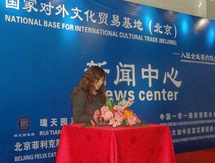 国际文化产业投资洽谈会海外合作中心主任王晓玲代表文洽会与国家对外文化贸易基地代表、北京菲利克斯猫动漫发展有限公司总经理许洪双先生当天签署了意向合作协议