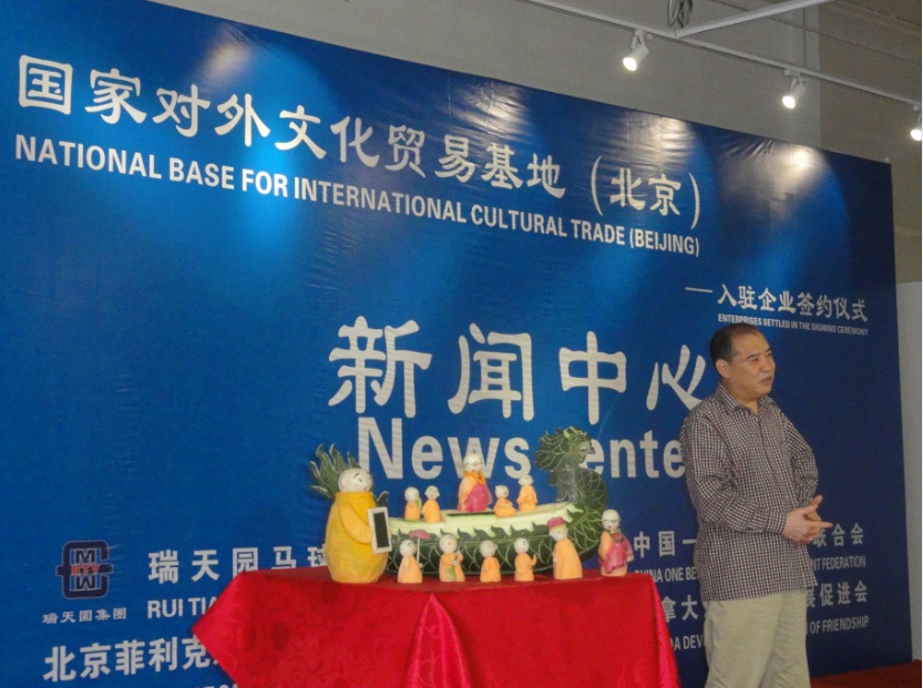 国家对外文化贸易基地京交会会场还进行了“大健康食雕艺术专场汇报表演”。大家一起兴致勃勃地合影