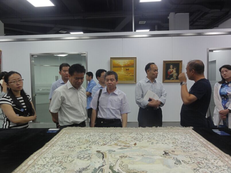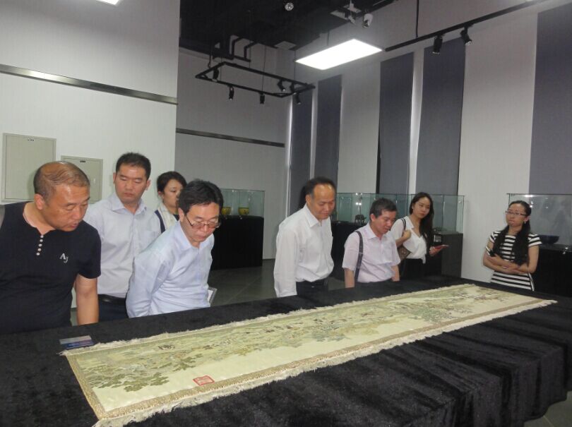 来自山西繁峙晋绣坊(左1)、山西省文化厅(左2)、山西省商务厅(左3-6)的领导参观考察国家对外文化贸易基地