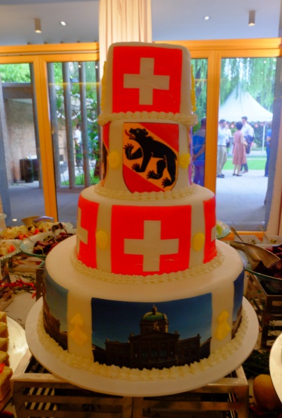 瑞士国旗装点瑞士驻华使馆2016国庆日的蛋糕