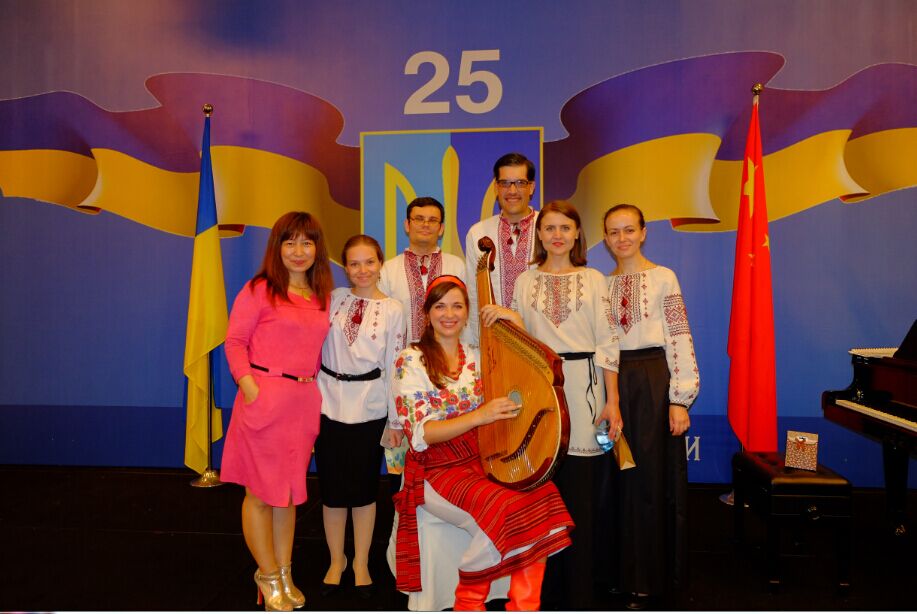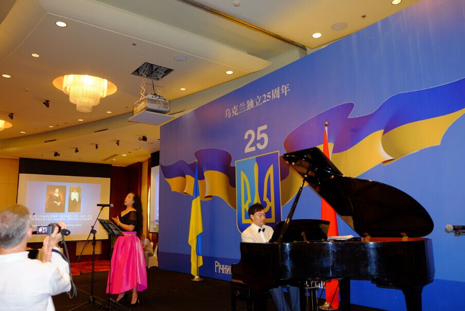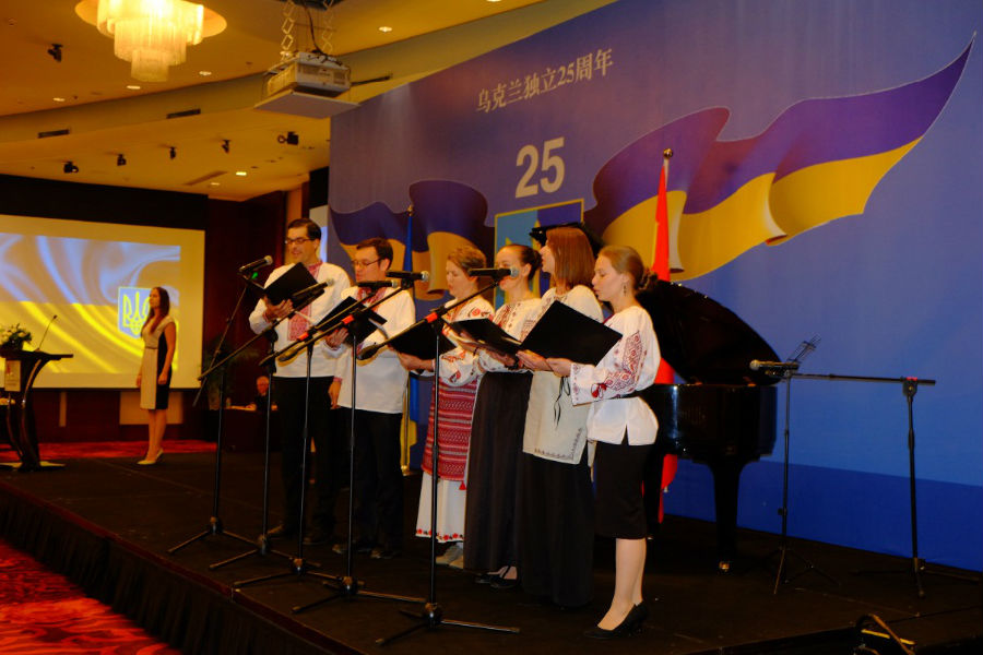乌克兰独立25周年招待会上首先演唱两国国歌