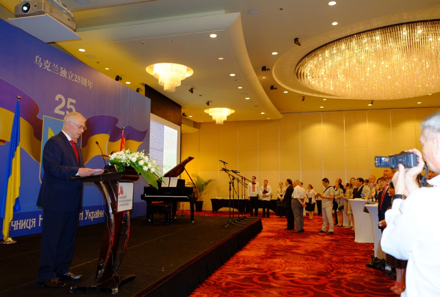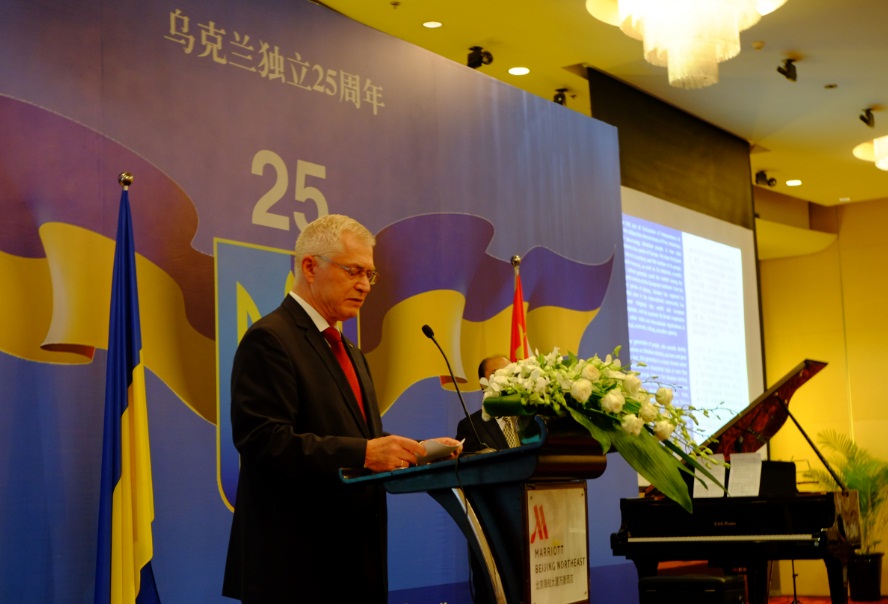 乌克兰独立25周年招待会上乌克兰驻华大使焦明发表贺词