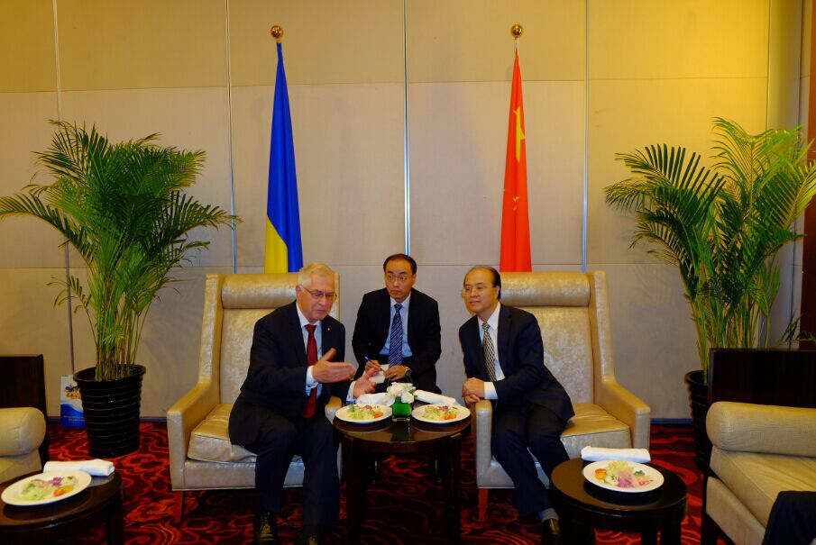 乌克兰驻华大使焦明在致辞中讲道,中国是乌克兰最主要的伙伴之一, 两国是战略伙伴关系,目前两国正在落实中乌2014-2018年战略关系发展计划,该计划包括农业、能源、航天和火箭制造、通信、投资等领域的合作项目。