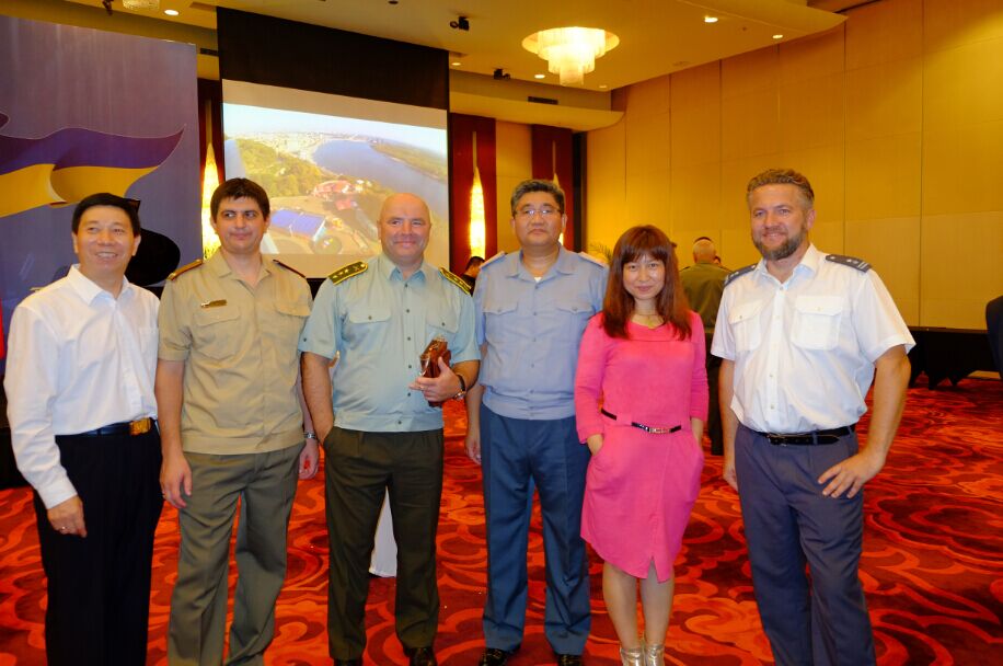 世界商人网主编王晓玲与来自乌克兰、哈萨克斯坦、波兰等国威武的武官们合影
