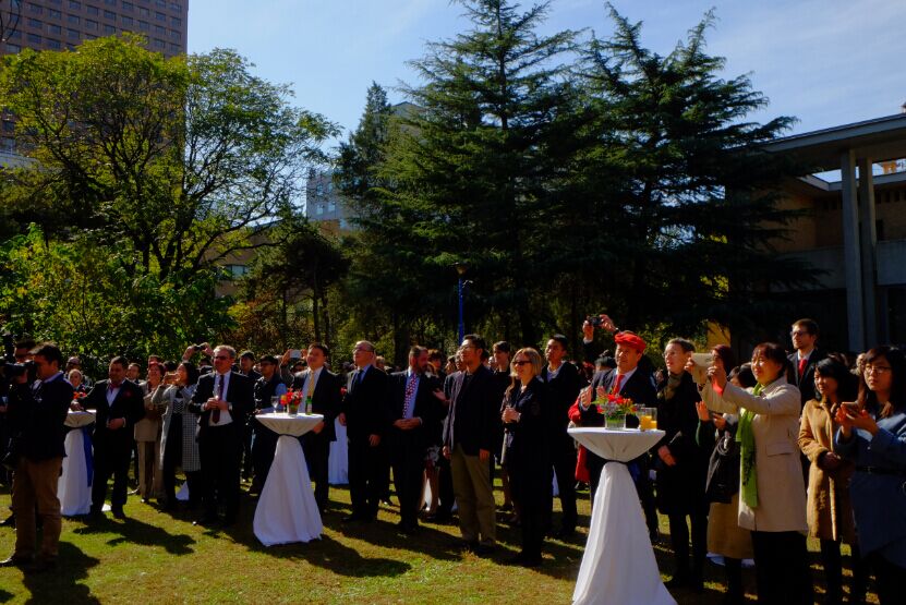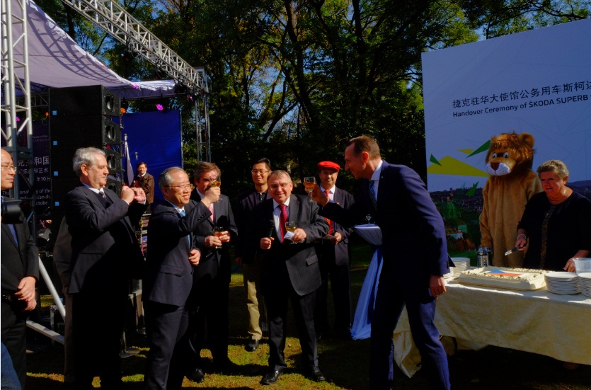 捷克驻华大使馆公务用车斯柯达SUPERB速派交车仪式上的国庆祝酒