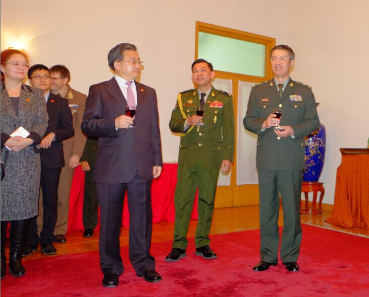 柬埔寨驻华大使凯.西索达阁下与来宾举杯共祝柬埔寨王国63周年独立日暨柬埔寨王国建军节