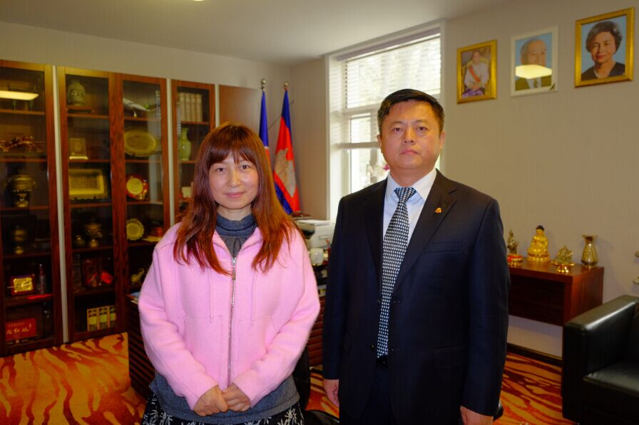世界商人网董事总经理兼总编王晓玲与柬埔寨驻华大使凯.西索达阁下会面并合影