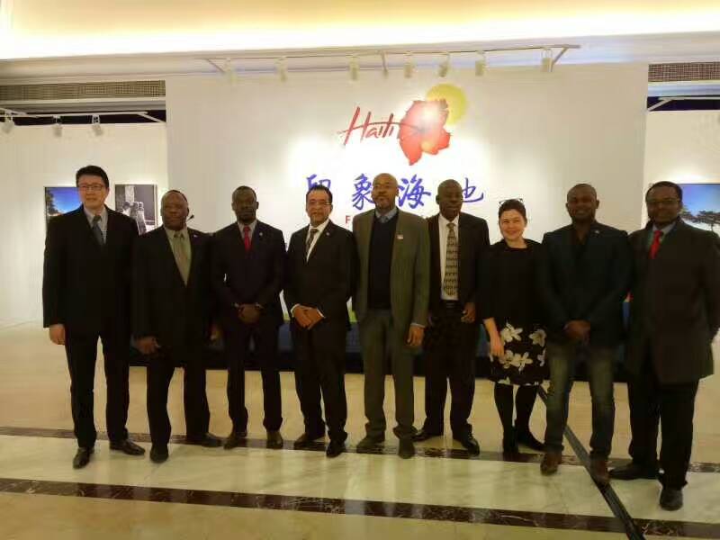海地贸易发展局在华常驻代表拉尔夫先生(左3)与海地的另两位工作人员合影