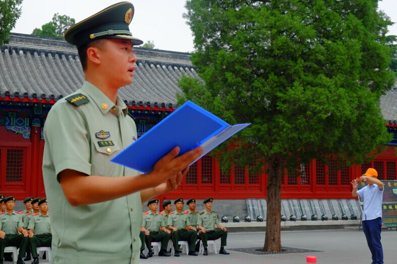 武警天安门城楼中队代表:军民共建鱼水情深,融合发展强国强军。我谨代表天安门城楼全体官兵向你们的到来表示热烈的欢迎。