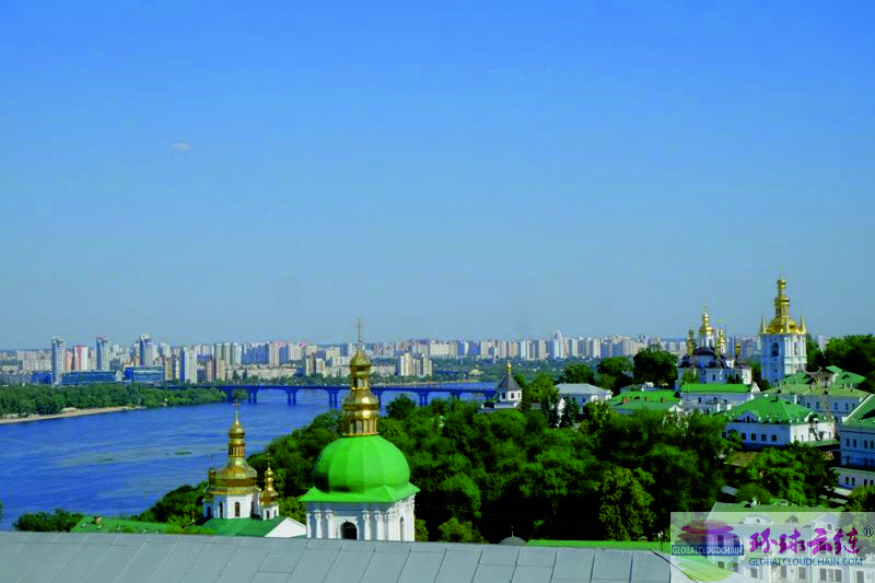 从基辅植物园远眺第聂伯河东岸乌克兰基辅:俯瞰 乌克兰,位于欧洲东部,东接俄罗斯、南濒黑海,北与白俄罗斯毗邻、西与波兰、斯洛伐克、匈牙利、罗马尼亚和摩尔多瓦诸国相连。乌克兰地理位置重要,是欧洲联盟与