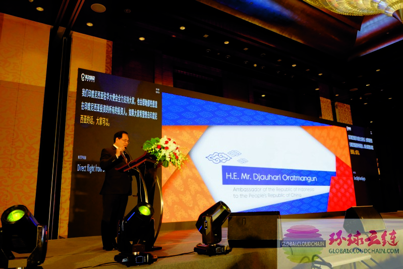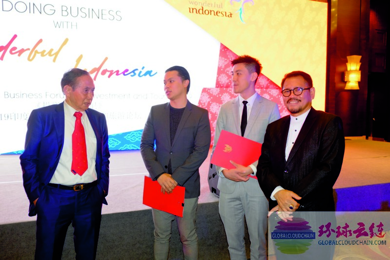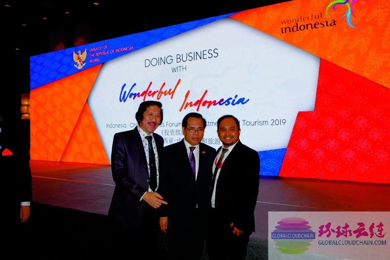 2019年9月18日,投资缤纷印尼:2019印度尼西亚-中国投资和旅游论坛在北京成功举行。印度尼西亚共和国外交部亚洲和非洲事务副部长德斯拉·珀卡亚(Desra Percaya)大使阁下,印尼驻中国及驻蒙古国大使周黎浩(Djauhari Oratmangun )阁下,印度尼西亚共和国外交部阿里菲扬托·索菲扬托先生,印度尼西亚巴淡岛自由区管理局副主席Purwiyanto先生以及来自印尼工商会和中国当地的企业家代表共300余人应邀参加并共同见证多方合作协议的签署。环球云链作为国际旅游产业项目孵化器平台,区块链咨询与资讯平台应邀出席致贺。
