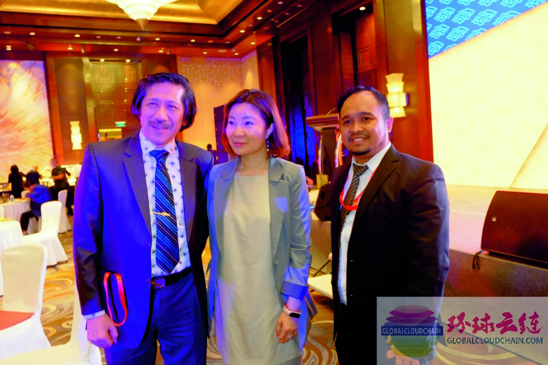 环球云链国际旅行社董事总经理王晓玲与印尼中国商会主席(右)及中国企业家(左)合影