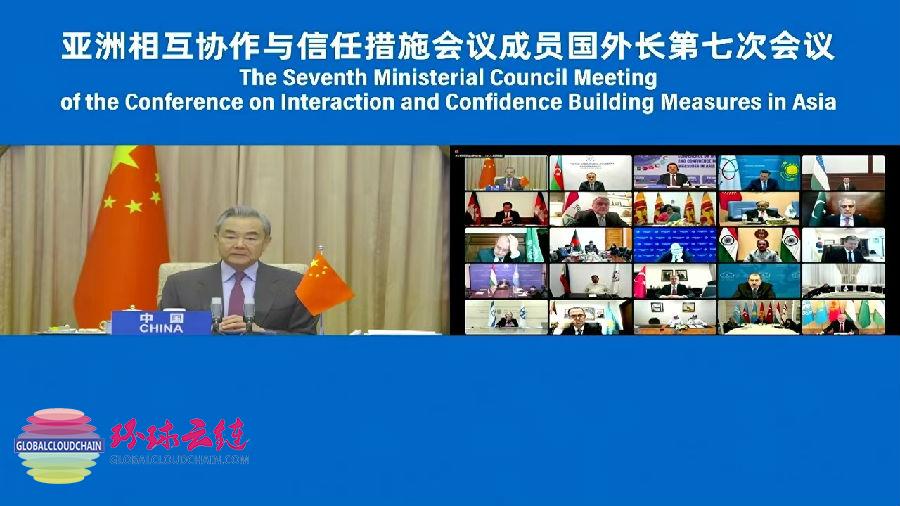 12月17日,中共中央政治局委员、外交部长王毅以视频方式出席亚洲相互协作与信任措施会议第七次外长会议。