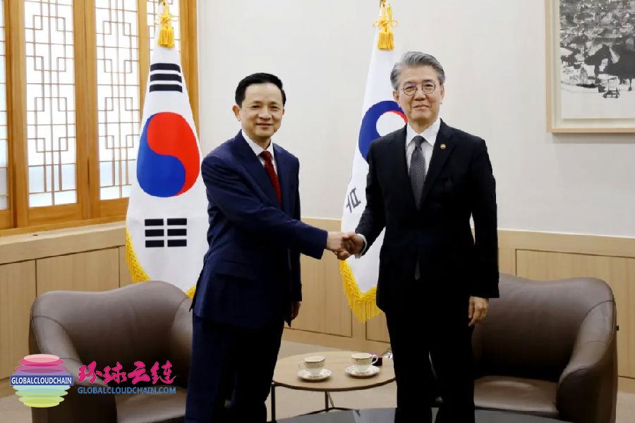2024年12月30日,新任驻韩国大使戴兵向韩国外交部仪典长金泰珍递交国书副本,并会见韩国外交部第一次官金烘均。