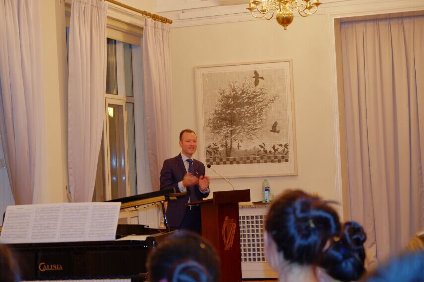 爱尔兰驻华大使馆一等秘书蓝海翔先生在音乐会上致辞